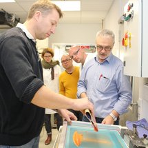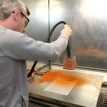 Am zweiten Tag ging es in die Praxis, die Teilnehmer/Innen durften dann selbst im Flocklabor der CHT Germany GmbH beflocken. Es wurde das Beflocken verschiedenster Materialien gezeigt und ausprobiert. Als Highlight durfte dann jede/r Teilnehmer/In ihre/seine eigene Teilnehmerurkunde beflocken. Dies machte allen großen Spaß! Nach einem gemeinsamen Mittagessen schloss eine sehr erfolgreiche Flock School mit begeisterten Teilnehmern/Innen und Referenten. Es hat wieder einmal gezeigt wie umfangreich das Thema „Flock“ ist und dass diese wichtige Fortbildung im Verband sehr umfangreiches Wissen für Flockinteressierte, neue Mitarbeiter und Kunden geben kann.