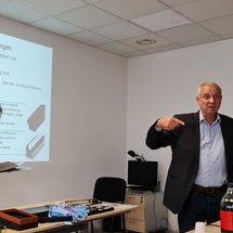 The Flock School 2022 took place from 22-23 September at our member AIGLE Macchine SRL in Turin / Italy. We were happy to be in Italy for the first time with the Flock School at AIGLE. 16 participants from Europe and Canada attended. The first day of the training was dedicated to the theory "all about flock". The speakers from the fields of flock production (Klaus Schreiber / Velutex Flock S.A.), adhesives (Thomas Starsetzki / Kissel & Wolf GmbH), flocking machines (Alberto Sadun / Aigle Macchine SRL) and flocking processes presented their extensive knowledge to the participants in interesting lectures.