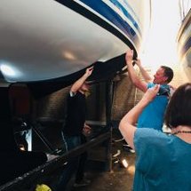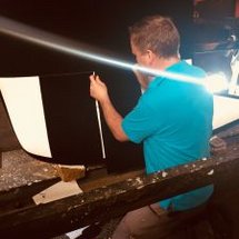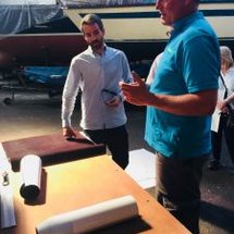 Rik Breur from Finsulate invited us. Mr. Breur showed us impressively how he makes flock installations on boats. He explained everything worth knowing about materials and technology. All participants were excited and we could watch as Rik Breur and his colleagues on a boat perform the flocktape installation and try it out for themselves. It was amazing how fast and precise this is done.